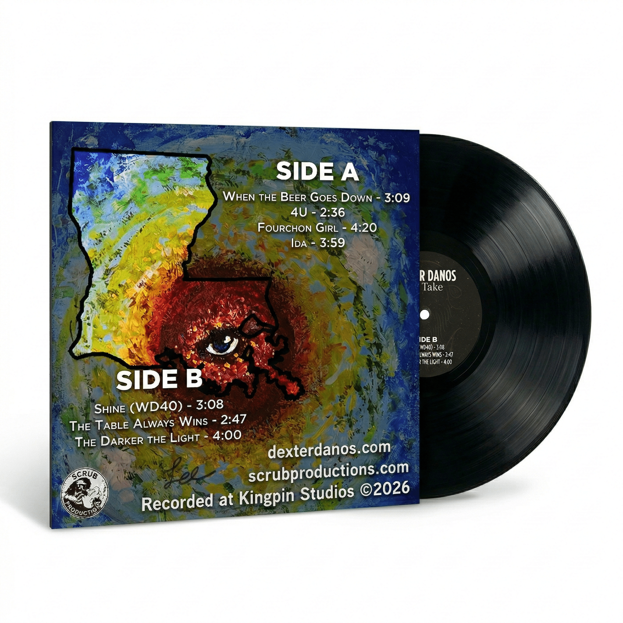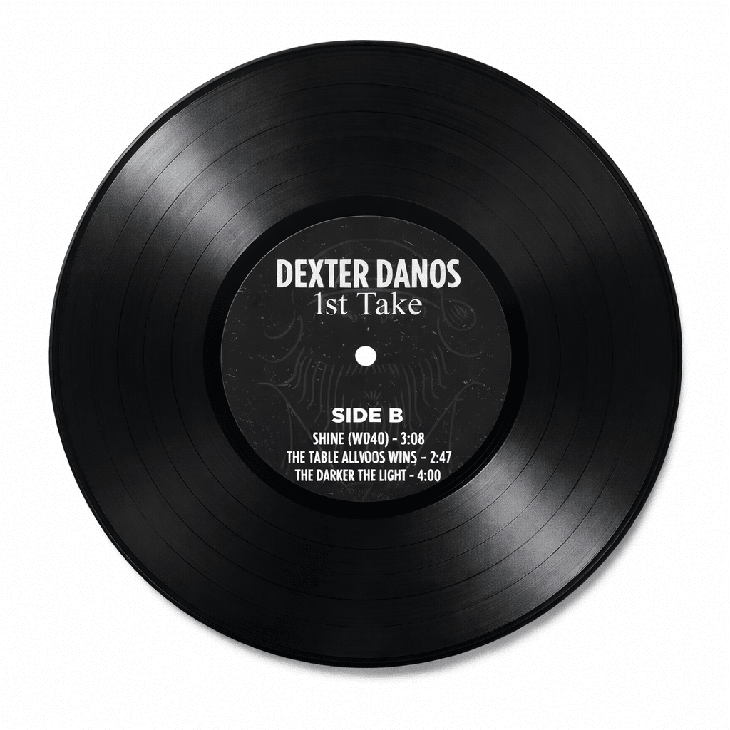 1st Take is the debut vinyl release from Dexter Danos, pressed on classic black 12-inch vinyl and packaged in a full-color jacket featuring original front and back artwork.